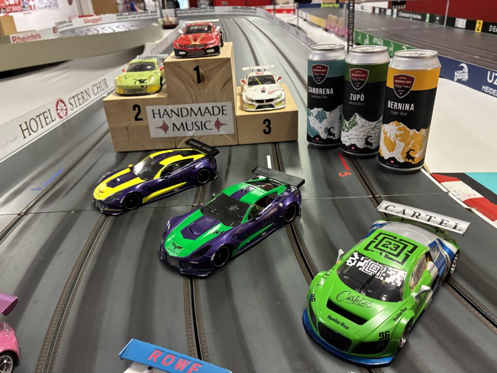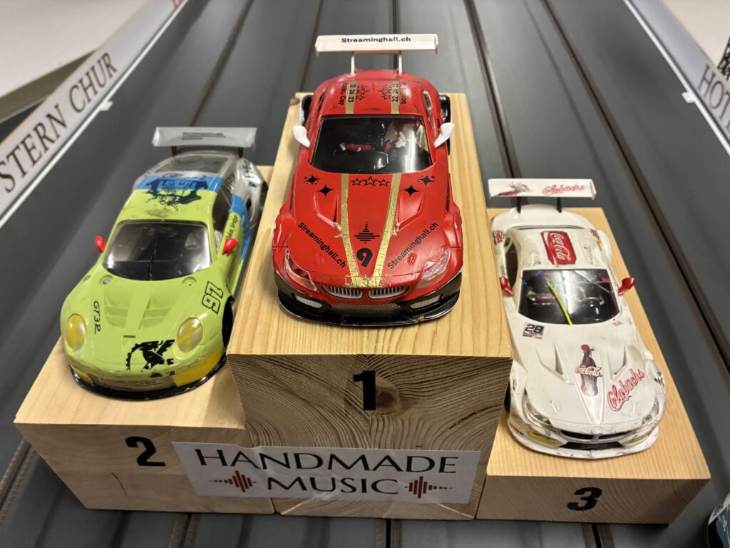 Die Reaktion der Top 5 viel heftig aus. Vom Start weg zeiten sie ihr Können und den Willen etwas zu Reissen. Runde um Runde signalisierten die verschiedenen Systemtöne, dass es persönliche schnellste Runden oder die schnellste Überhaupt-Runde war. Mike holte sich den Tagessieg mit der über das ganze Rennen blitzartigsten Runde von sensationellen 6.836 Sekunden (Lauf 9, Spur 3, Runde 60). Krass! Apropos Mike. Er war es, der Fabrizio und Lukas auf das Podest folgte. Sie drei standen in der letzten Saison fünfmal zusammen auf dem Holzblock, aber nie in dieser Reihenfolge. Fabrizio gewann sein 17. von 31 Scalära Cup Rennen. Respekt! Markus und Michele sind am Podest sehr nahe dran und haben Reserve gegen hinten.