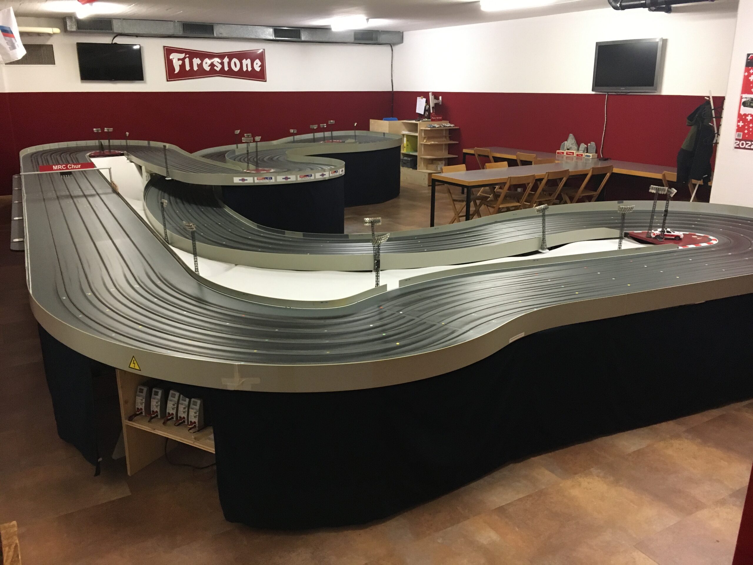 Die Formel 1 oder die DTM in Chur? Nicht möglich. Aber in Chur gibt es eine Rennstrecke. Seit 2020 betreiben wir eine fünfspurige Holzrennbahn für den Slotcar-Rennsport (1:24/1:32). Bis zu 10 Vereins-, Schweizermeisterschafts- und Langstreckenrennen finden jährlich darauf statt. Dazu mieten Familien, Firmen oder Gruppen die Rennbahn mit den schnellen SSR24-Rennautos. Alle kommen so in den Genuss von Slotracing und haben viel Spass bei uns an der Rennbahn. Praktisch jede Rennstrecke auf der Welt hat ihre Streckenabschnitte benannt. Legendäre Begriffe wie Eau Rouge, Maggotts / Becketts oder Fuchsröhre sind weit herum bekannt. Warum also nicht auch wir?