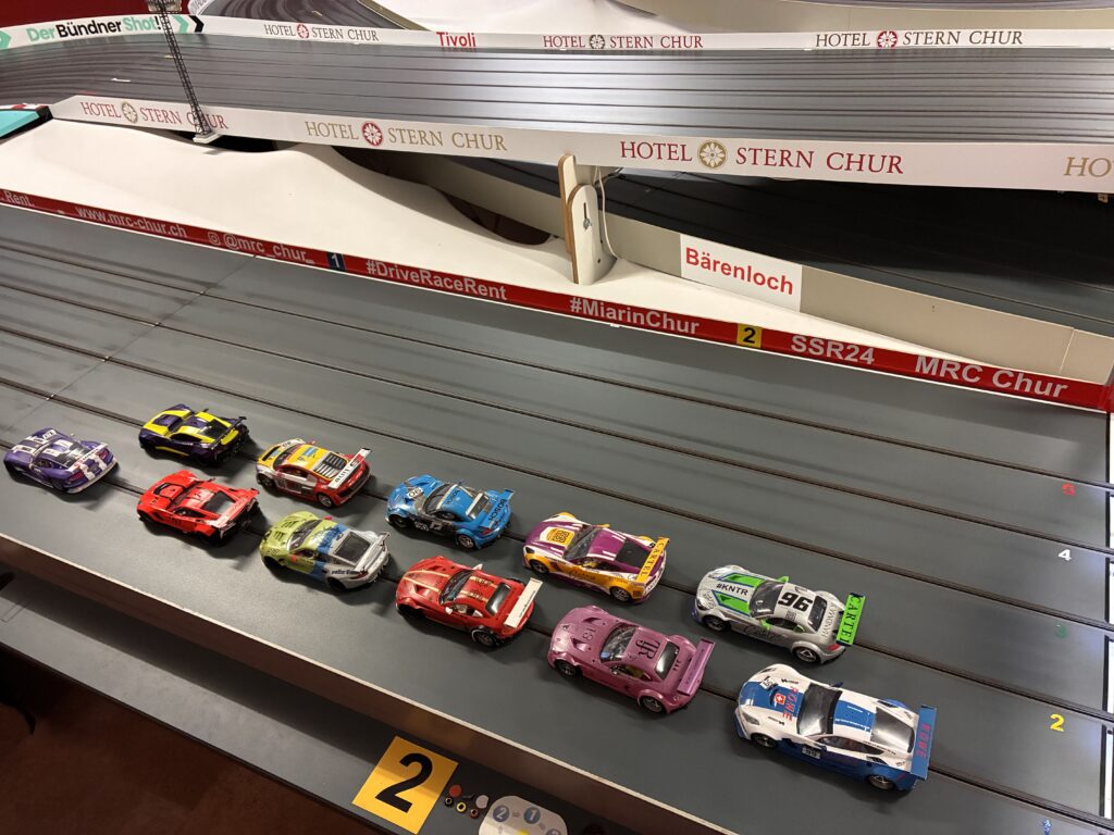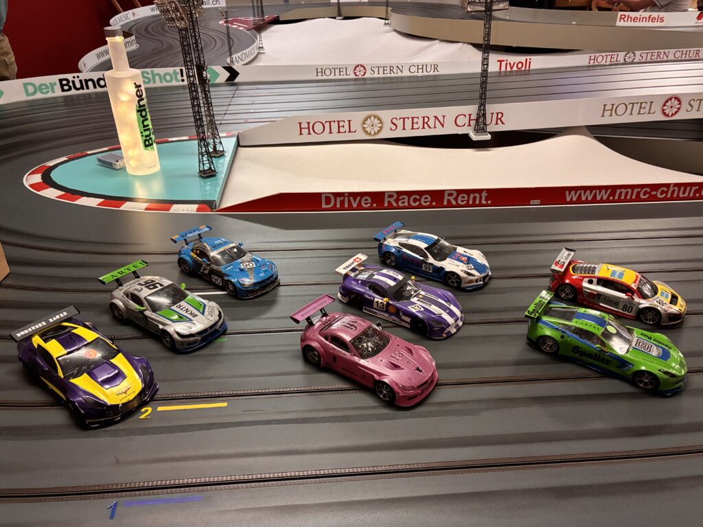 Ein Spannendes Rennen mit vielen Schlagzeilen und ein perfekter Renntag fanden mit der After-Race-Party einen würdigen Abschluss. Kurz zusammengefasst: «Six Seven» und was heute dazugehört in Form der schnellsten Rennrunde. Das Starterfeld mit spannenden Unterteilungen und engen Entscheidungen in der Spitzengruppe, im Mittelfeld und mit der Verfolgergruppe. Die Leistungsdichte ist nach 75 Rennminuten extrem nahe beisammen, was die Attraktivität von Slotracing beweist. Ein Blick auf die Rangliste lohnt sich. Let’s Race!